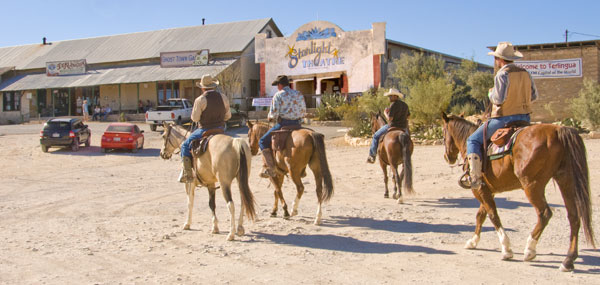 When you get here, you can hang out on the porch with all the other characters, wander through the Ghost Town, or go shopping next door at the Terlingua Trading Company.